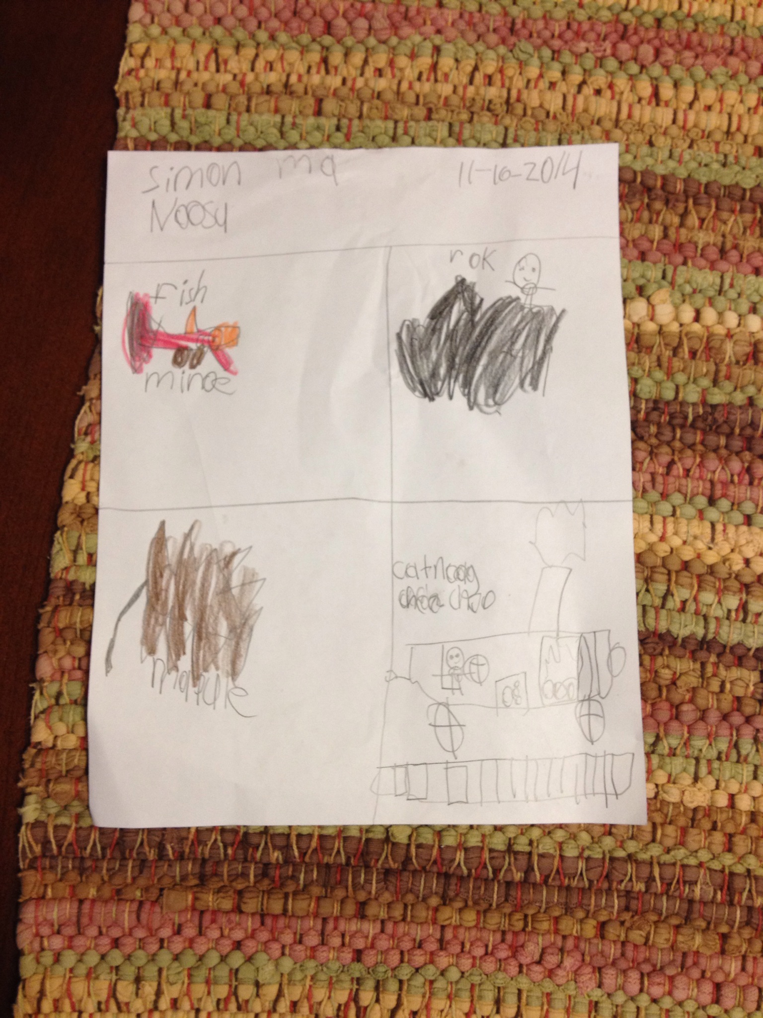 After Owen’s zumbini class we did some giant clock work. Simon is motivated to tell time by hearing Rick mention that some of his college students can’t tell time on an analog clock! What 6 year old doesn’t want to be smarter than a college student! He happily exclaimed that knowing how to count by fives so well was really helpful.