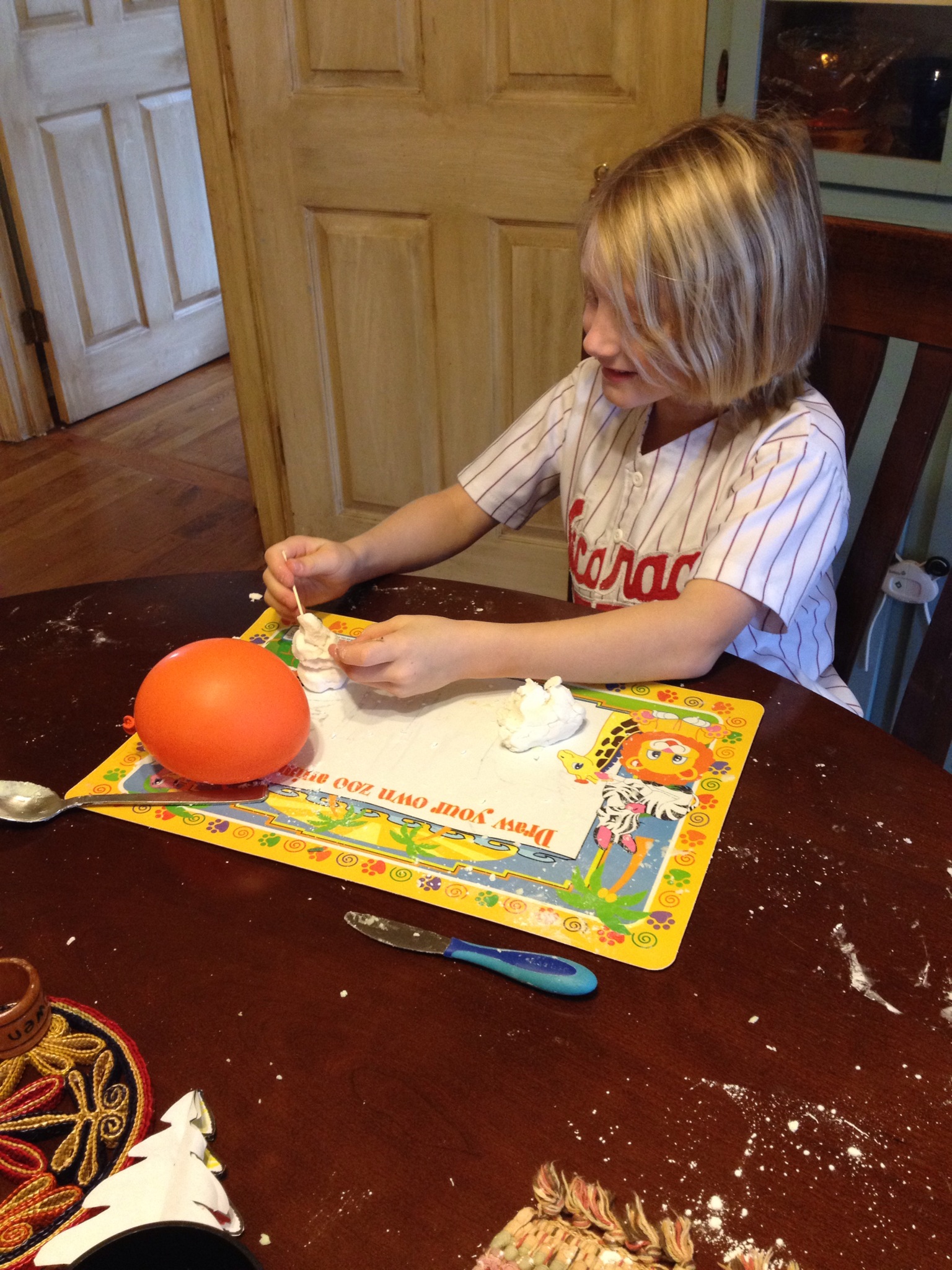 We have been trying to do a sensory activity on the mornings we are all home together. On Monday we made bubble dough and snow dough. I found the recipes via Pinterest. Bubble dough is just cheap dish soap added to cornstarch until you reach the consistency that is a semisolid. It feels really cool to work with.
