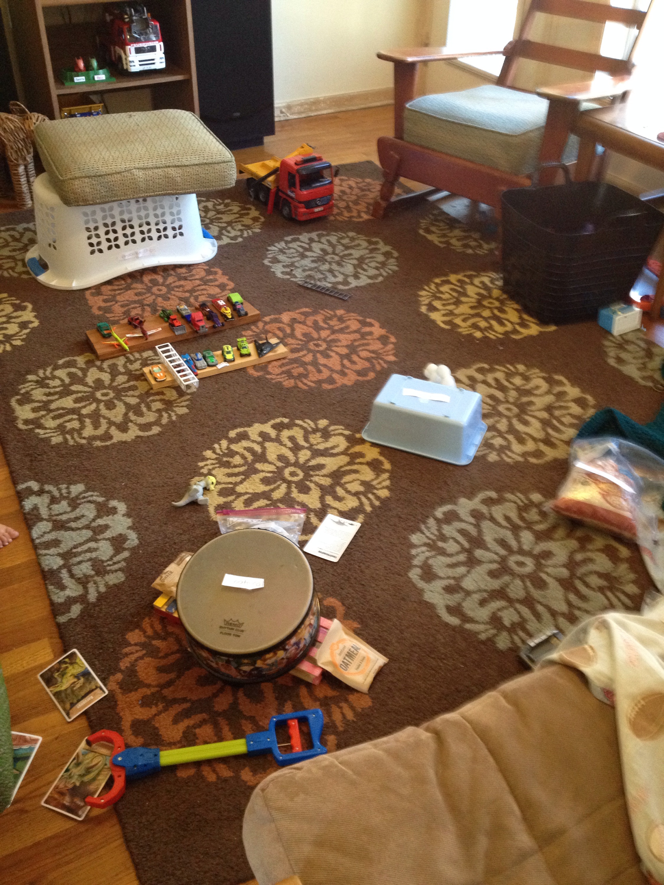 Of course other people in my house leave things everywhere and I notice all the time. I huff and puff at them and remind them in that strained tone to put this or that where it belongs. I may have even used that dreaded “how many times do I have to tell you?” expression. By noticing my things around the house I think I’m beginning to see that my kids are human, and that we’re not so different after all. I feel like I have “good” reasons for leaving my things around. If I (an adult who has had plenty of time to learn where things are supposed to go, even be the one to decide where things go when not in use) can’t get them in the right spot every time, then how can I really expect my little kids to get it right all the time. What would I think if they started huffing and puffing at me for my plate on the table or my underwear on the floor?